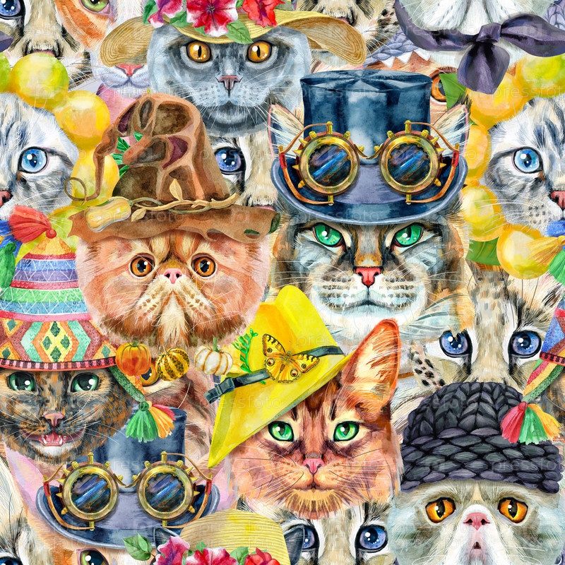 Бесшовный узор из кошек. Кошки для графики на футболках. Акварельные иллюстрации кошек. Акварель рисованной иллюстрации