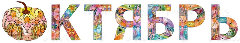 Художественный дизайн ручной росписи. Ручной рисунок слова ОКТЯБРЬ на русском языке для футболки и других украшений