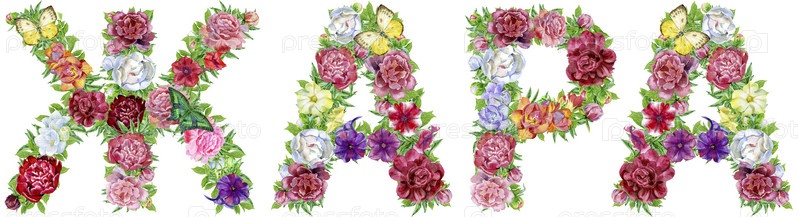 Слово Жара на русском языке из акварельных цветов, изолированная рука, нарисованная на белом фоне, свадебный дизайн, русский алфавит