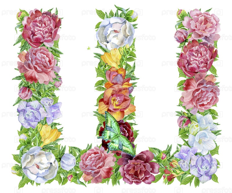 Буква из акварельных цветов, изолированная ручная работа, свадебный дизайн, кириллический русский алфавит 26