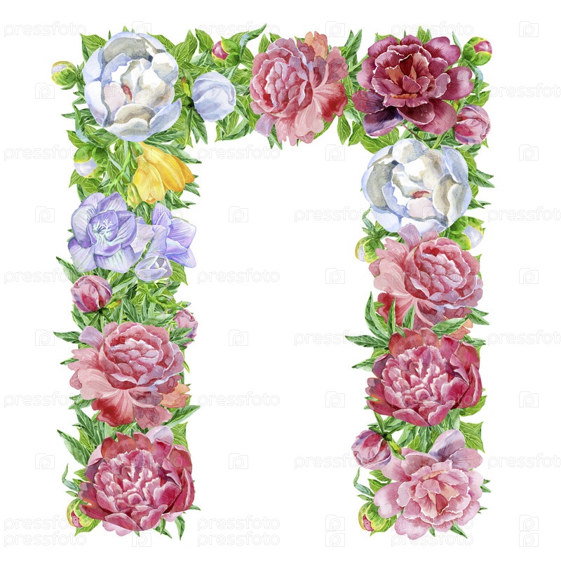 Буква из акварельных цветов, изолированная ручная работа, свадебный дизайн, кириллический русский алфавит 17