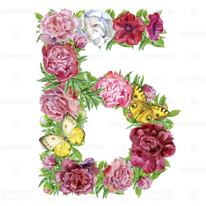 Письмо из акварельных цветов. Кириллический русский шрифт. б