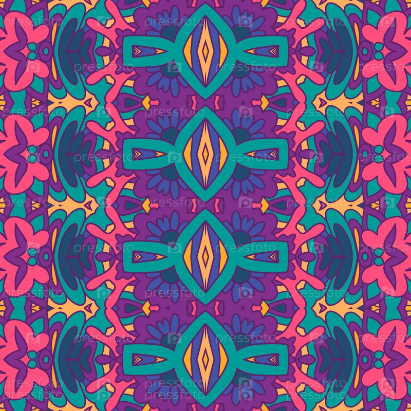 Векторный красочный геометрический психоделический фон искусства. Абстрактные племенные индийские винтажные ромбы текстильные этнические бесшовные декоративные узоры