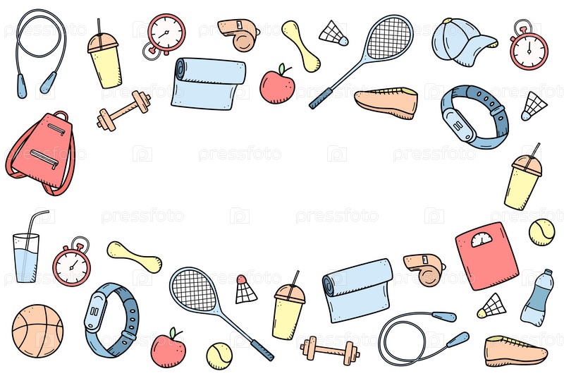 Концепция набора значков спортивных каракулей. Элементы дизайна спортивного инверта, здоровый образ жизни Векторная иллюстрация
