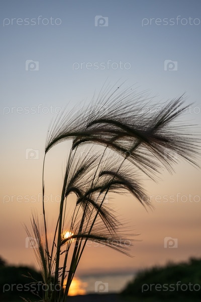 Силуэт травы на фоне заходящего солнца