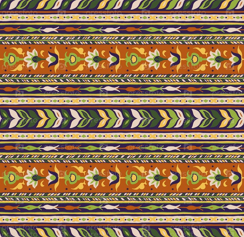 Набор этнических элементов. Бордюр представляет собой полосу с цветами, листьями, ветками, вензелями. Народная вышивка. Славянский, украинский, русский мотив. Хохлома, матрешка, дымковская игрушка. Мексиканский, индийский, цыганский ковер. Вязаное кружево