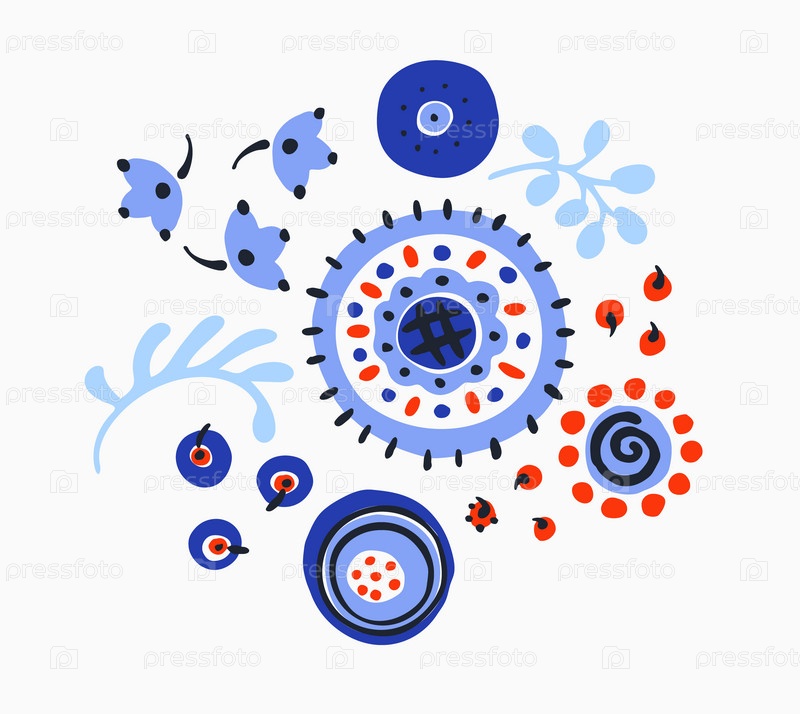 Набор этнических элементов. Бордюр представляет собой полосу с цветами, листьями, ветками, вензелями. Народная вышивка. Славянский, украинский, русский мотив. Хохлома, матрешка, дымковская игрушка. Мексиканский, индийский, цыганский ковер. Вязаное кружево