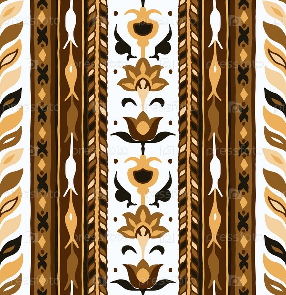 Геометрический дамасский орнамент. Икат границы. Этническая вышивка с листьями и монограммами. Племенная векторная текстура. Бесшовный народный узор в ацтекском стиле. Индийский, скандинавский, цыганский, мексиканский, африканский ковер