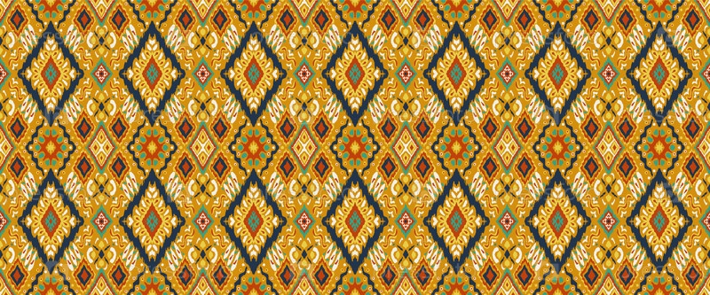 Икат геометрический фольклорный орнамент с бриллиантами. Племенная этническая векторная текстура. Бесшовный полосатый узор в стиле ацтеков. Народная вышивка. Индийский, скандинавский, цыганский, мексиканский, африканский ковер