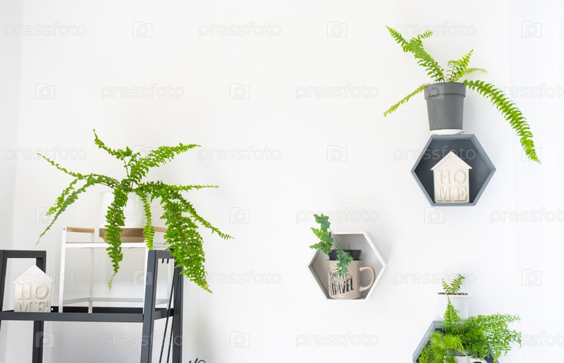 Полки на стене в виде сот с комнатными растениями в белом интерьере дома. Современный декор Комнатное растение уход за комнатным растением, зеленый дом