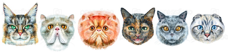 Симпатичные кошки. Кот для графики на футболках. Акварельные иллюстрации кошек. Акварель рисованной иллюстрации