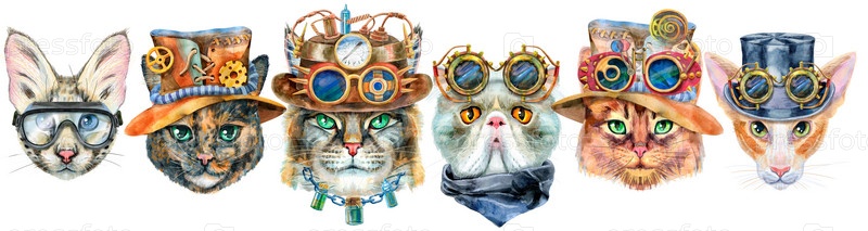 Симпатичные кошки. Кот для графики на футболках. Акварельные иллюстрации кошек. Акварель рисованной иллюстрации