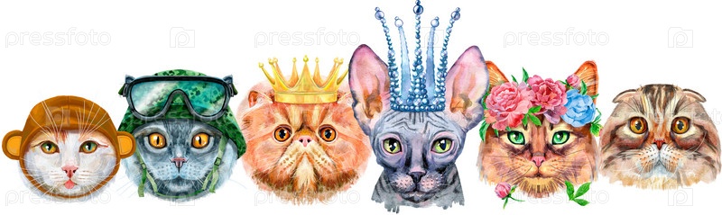 Симпатичные кошки. Кот для графики на футболках. Акварельные иллюстрации кошек. Акварель рисованной иллюстрации