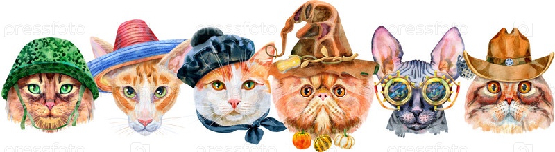Симпатичные кошки. Кот для графики на футболках. Акварельные иллюстрации кошек. Акварель рисованной иллюстрации