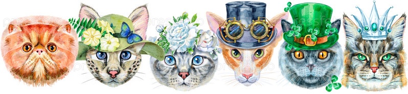 Симпатичные кошки. Кот для графики на футболках. Акварельные иллюстрации кошек. Акварель рисованной иллюстрации