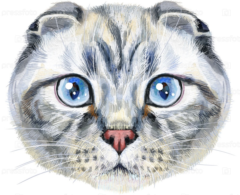 Милый кот. Кот для графики на футболках. Акварель шотландская вислоухая иллюстрация породы кошек