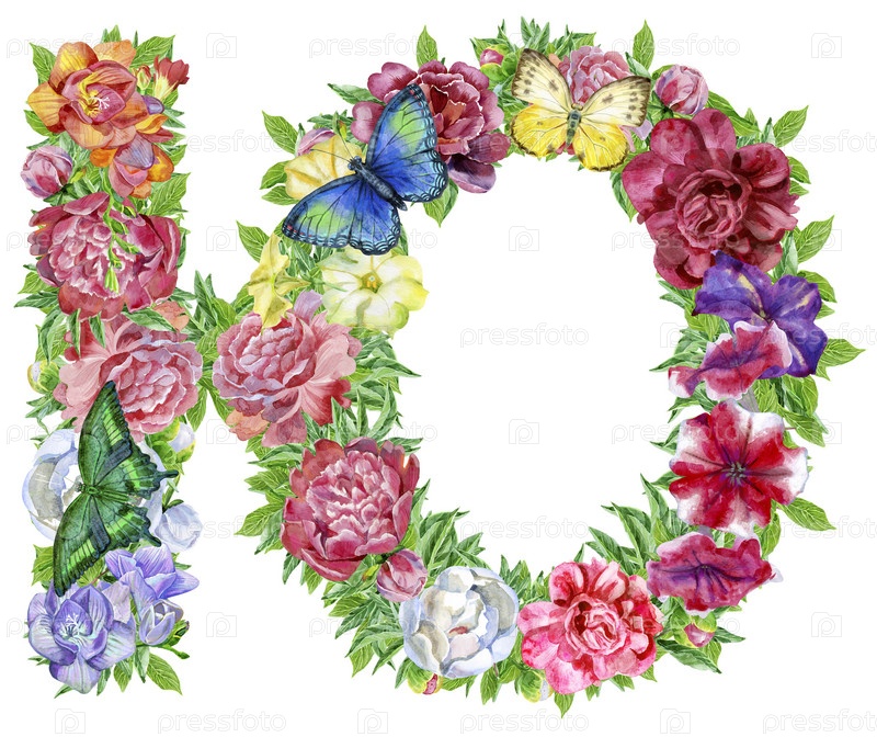 Письмо из акварельных цветов, изолированный рисунок от руки, свадебный дизайн, кириллический русский алфавит 32