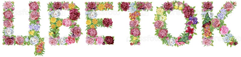 Цветок слова на русском языке акварельных цветов, изолированная рука, нарисованная на белом фоне, свадебный дизайн, русский алфавит