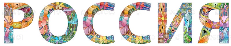 Векторное слово Россия на русском языке. Художественный дизайн ручной росписи. Иллюстрация к дизайну футболки, татуировке и другим украшениям