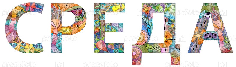 Художественный дизайн ручной росписи. Нарисованное вручную иллюстративное слово среда на русском языке для футболки и других украшений