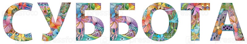 СУББОТА слово на русском языке. Рисованной надписи. Векторный текст