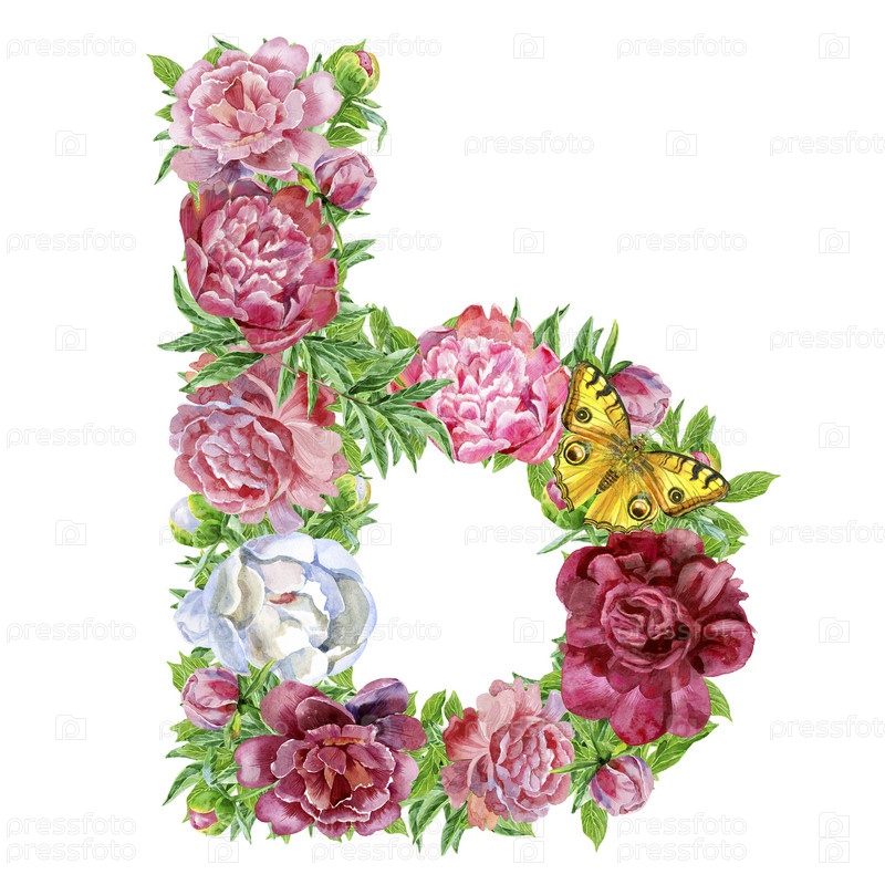 Письмо из акварельных цветов. Кириллический русский шрифт. 30