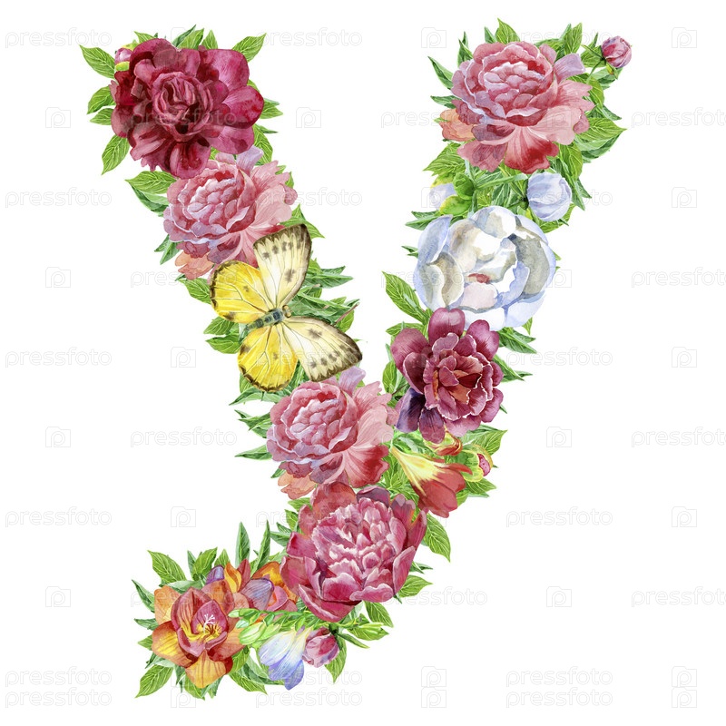 Буква из акварельных цветов, изолированная ручная работа, свадебный дизайн, кириллический русский алфавит 21