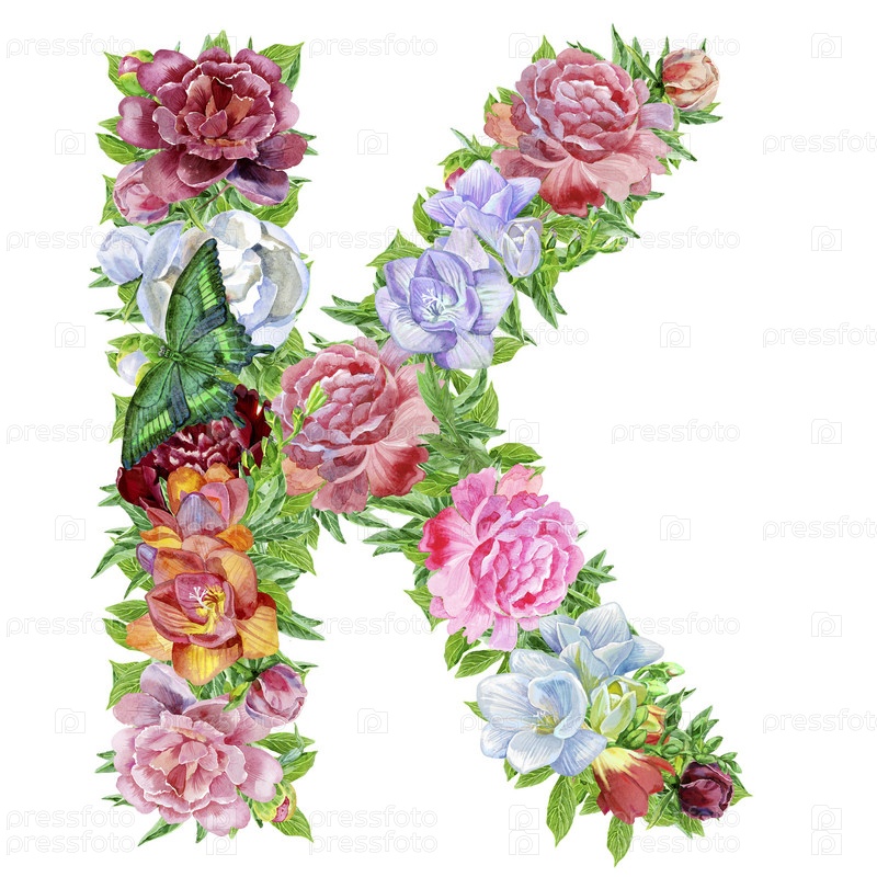 Письмо из акварельных цветов. Кириллический русский шрифт. 12