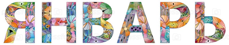 Художественный дизайн ручной росписи. Нарисованное вручную иллюстративное слово ЯНВАРЬ на русском языке для футболки и других украшений