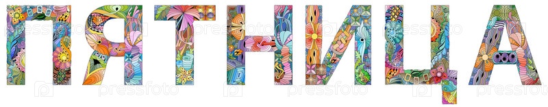 Художественный дизайн ручной росписи. Ручной рисунок слова ПЯТНИЦА на русском языке для футболки и других украшений