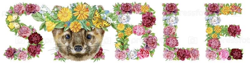 Слово SABLE из акварельных цветов, изолированная рука, нарисованная на белом фоне, свадебный дизайн, английский алфавит