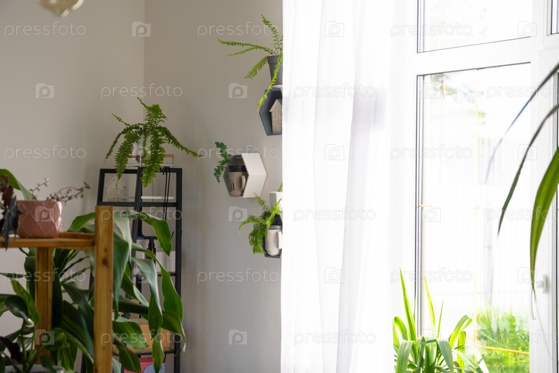 Полки на стене в виде сот с комнатными растениями в белом интерьере дома. Современный декор Комнатное растение уход за комнатным растением, зеленый дом