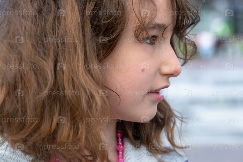 Портрет счастливой девочки с задорной и озорной улыбкой крупным планом с короткими вьющимися волосами