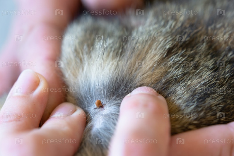 Клещ укусил кожу под шерстью кошки. Опасность нападения энцефалитных клещей, защита животных на прогулке, ветеринарное удаление насекомых