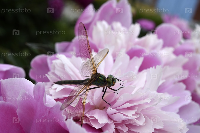 Стрекоза на цветке пиона. Большая стрекоза. Хищное насекомое