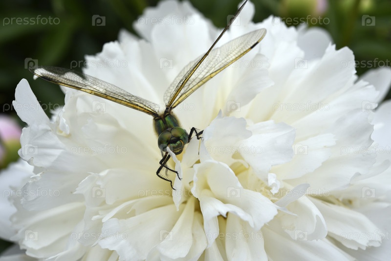 Стрекоза на цветке пиона. Большая стрекоза. Хищное насекомое