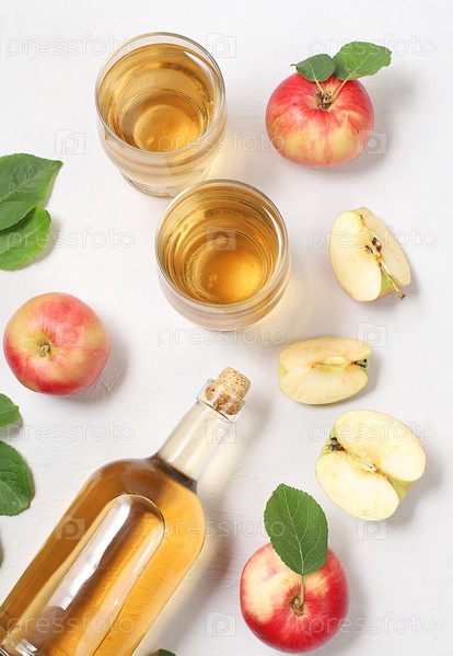Яблочный напиток, сок или ферментированный фруктовый напиток и ингредиенты на солнечном столе. Осеннее знамя. Концепция диеты и потери веса. Здоровое питание, детоксикация организма, яблоки способствуют очищению организма и снижению веса. выборочный фокус