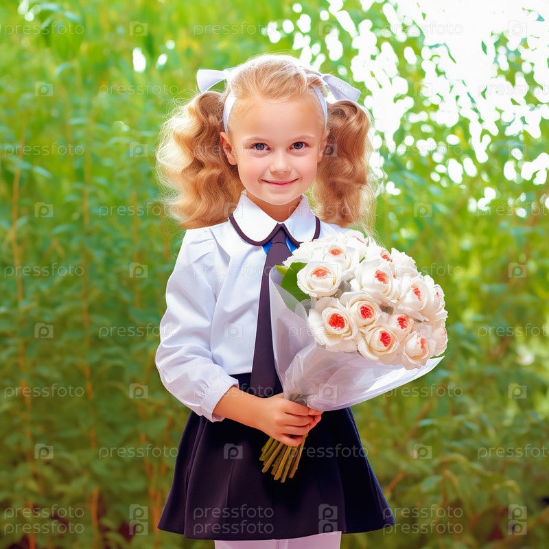 Портрет первоклассницы с букетом цветов. Генеративный ИИ