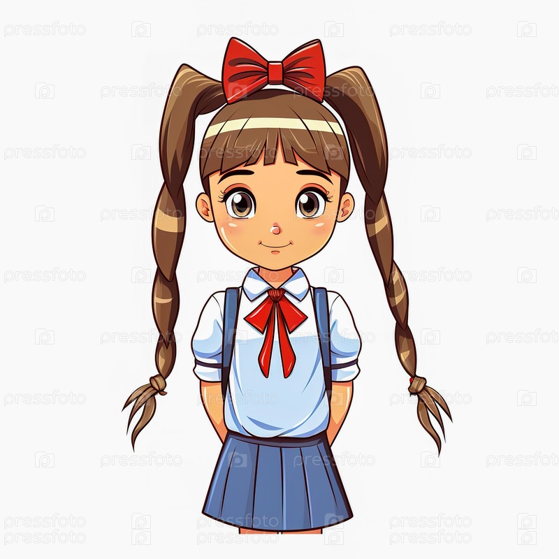 Первоклассница в школьной форме. Генеративный ИИ. Иллюстрация высокого качества