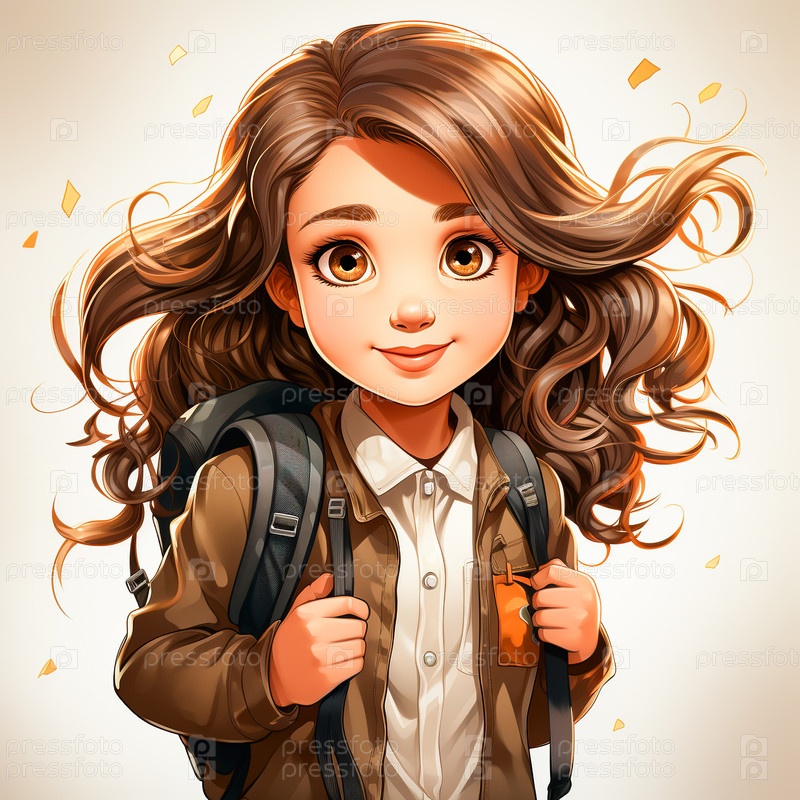 Первоклассница в школьной форме. Генеративный ИИ. Иллюстрация высокого качества