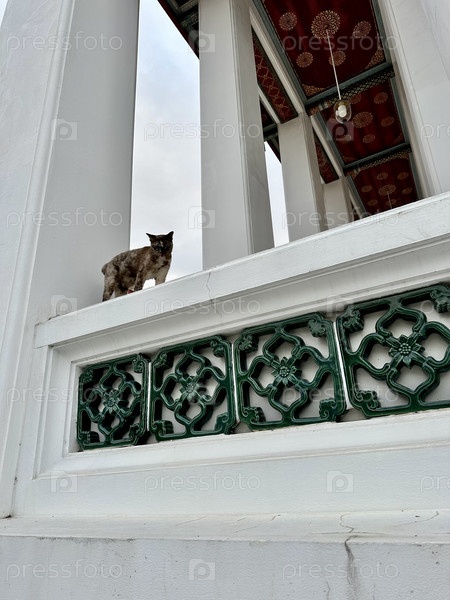 Кошка в здании с колоннами