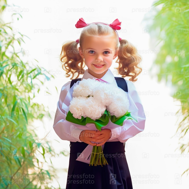 Портрет первоклассницы с букетом цветов. Генеративный ИИ