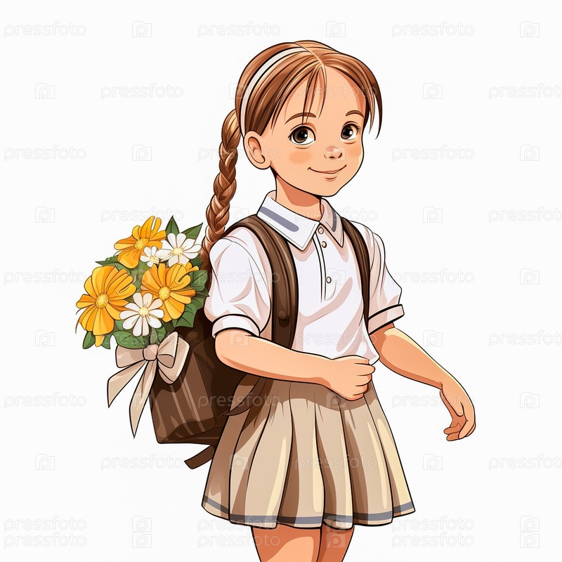 Первоклассница с букетом цветов в руках. Генеративный ИИ
