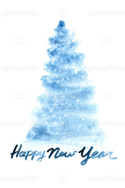 Синяя акварельная елка