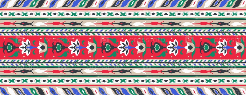 Геометрический фольклорный орнамент икат. Племенная этническая векторная текстура. Бесшовный полосатый узор в стиле ацтеков. Рисунок племенной вышивки. Индийский, скандинавский, цыганский, мексиканский, народный узор