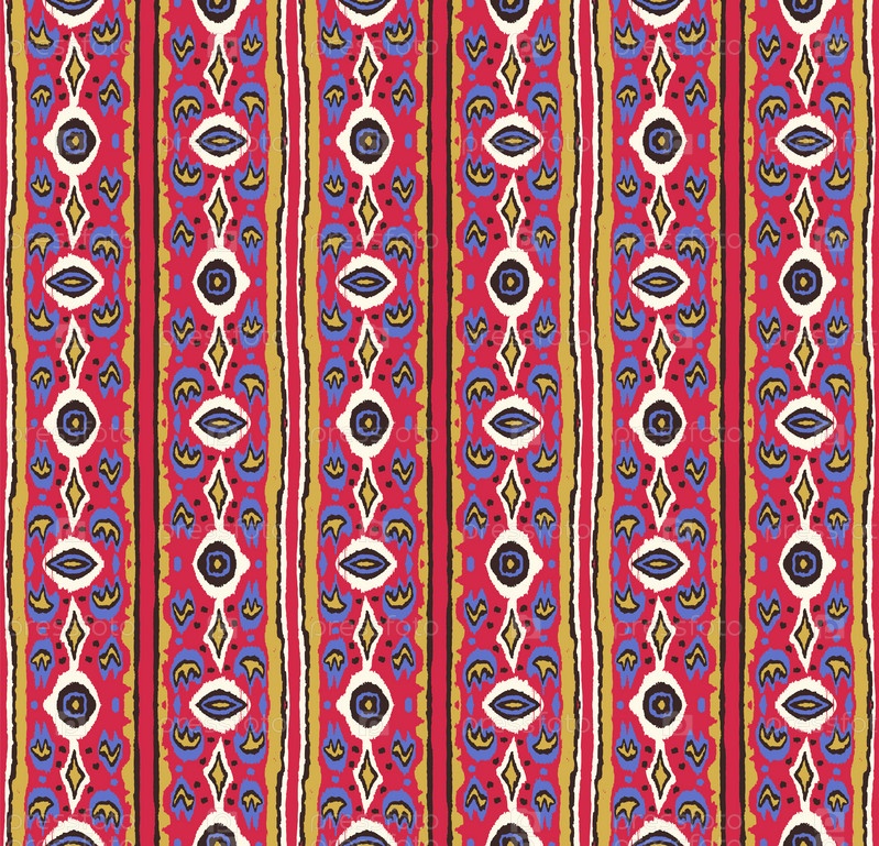 Икат геометрический фольклорный орнамент с бриллиантами. Племенная этническая векторная текстура. Бесшовный полосатый узор в стиле ацтеков. Народная вышивка. Индийский, скандинавский, цыганский, мексиканский, африканский ковер