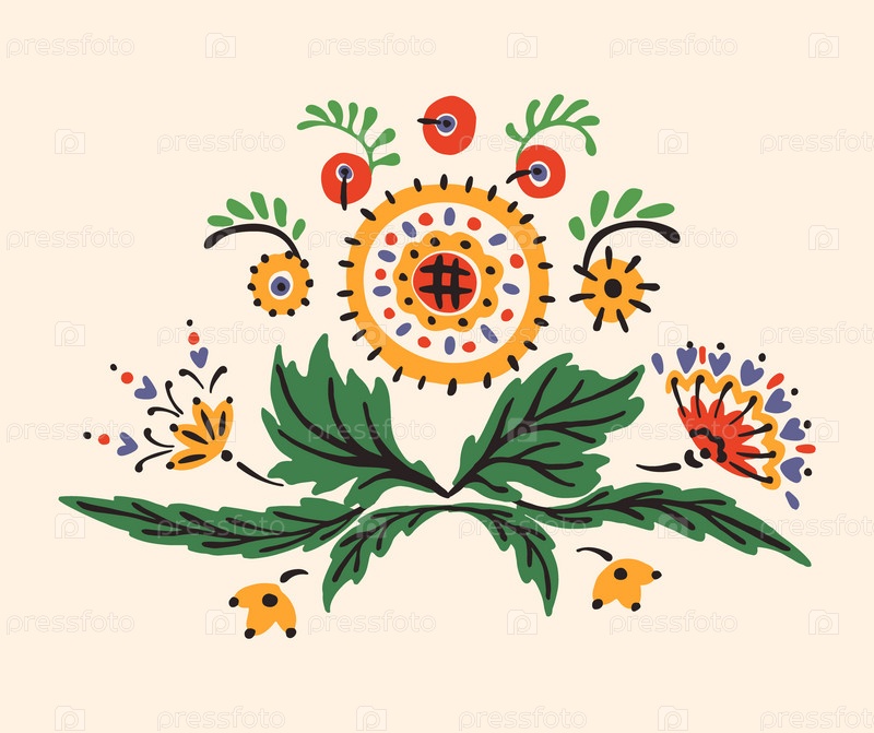 Набор этнических элементов. Бордюр представляет собой полосу с цветами, листьями, ветками, вензелями. Народная вышивка. Славянский, украинский, русский мотив. Хохлома, матрешка, дымковская игрушка. Мексиканский, индийский, цыганский ковер. Вязаное кружево