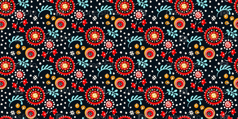 Бесшовный узор с фантазийными цветами, этнический вращающийся повторяющийся дизайн ткани и плитки, натуральные обои, иллюстрация завитка цветочного декора. Пейсли печать рисованной элементы.Украинский узор