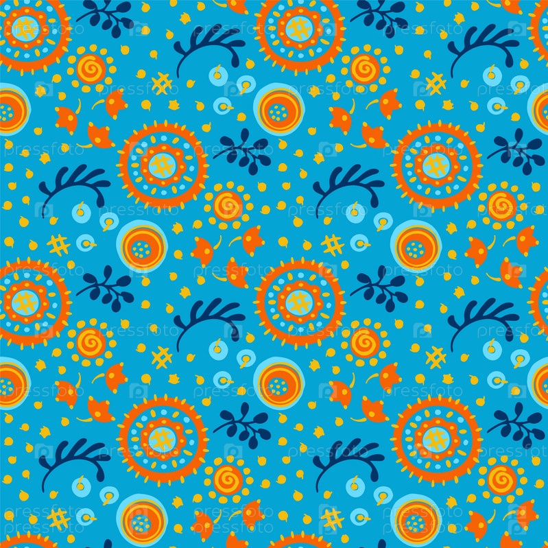 Бесшовный узор с фантазийными цветами, этнический вращающийся повторяющийся дизайн ткани и плитки, натуральные обои, иллюстрация завитка цветочного декора. Пейсли печать рисованной элементы.Украинский узор