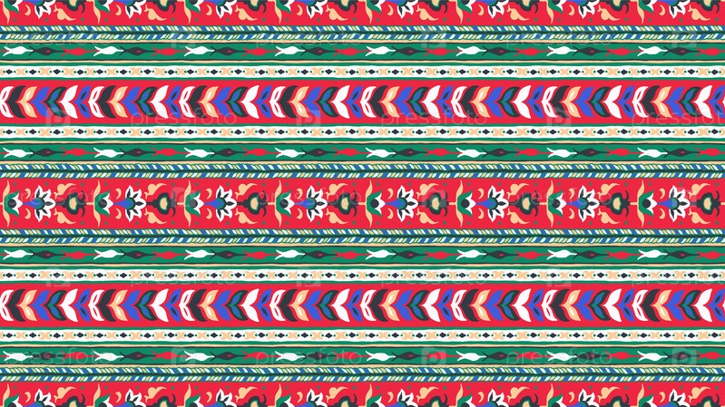 Геометрический фольклорный орнамент икат. Племенная этническая векторная текстура. Бесшовный полосатый узор в стиле ацтеков. Рисунок племенной вышивки. Индийский, скандинавский, цыганский, мексиканский, народный узор